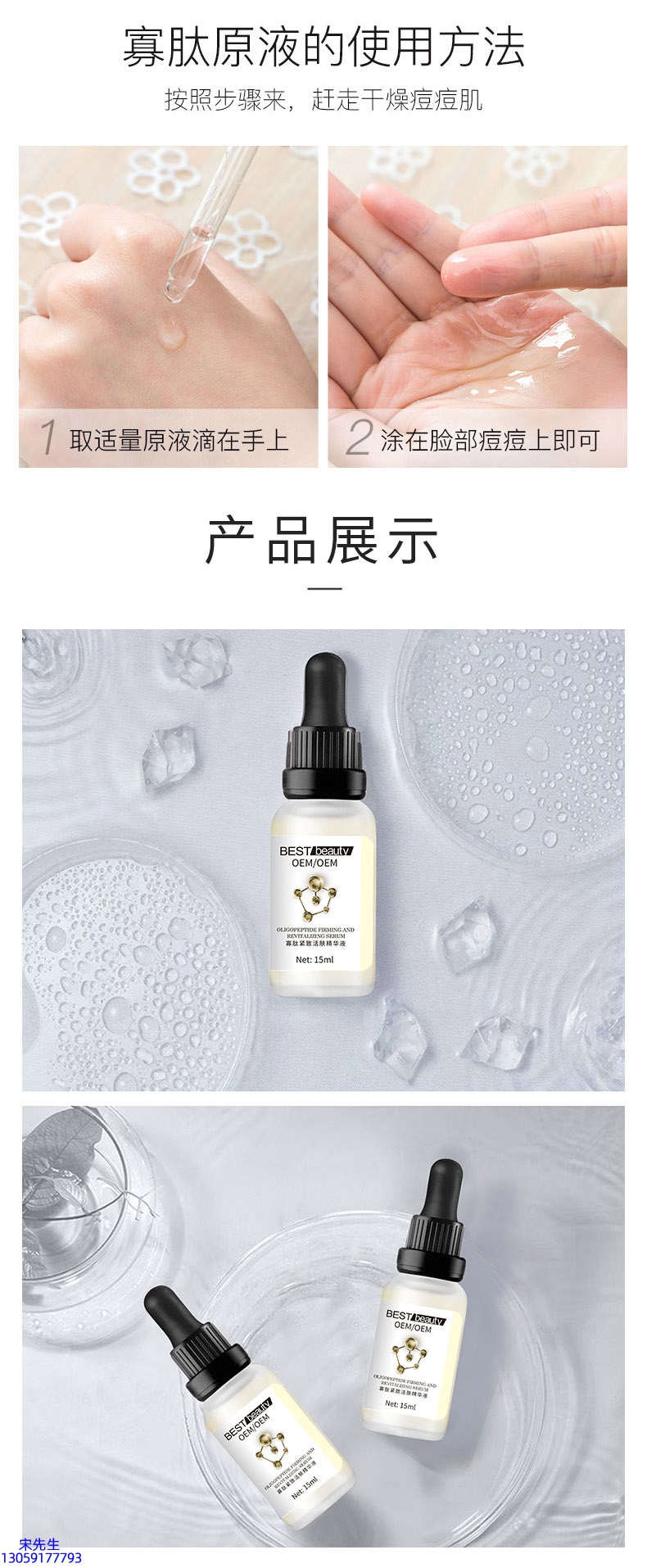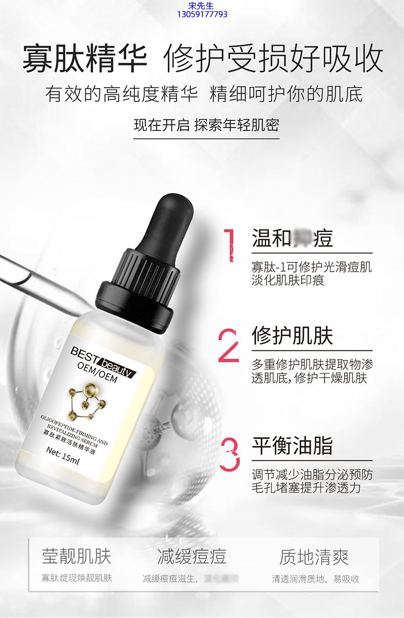 寡肽精华液OEM ODM代加工 紧致、祛痘、抗初老 OEM定制贴牌